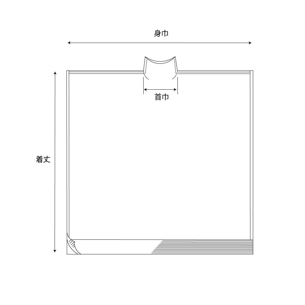 着丈 身巾 首巾(根元部分) 90.5 90.5 22 単位:cm ※若干の個体差があります。