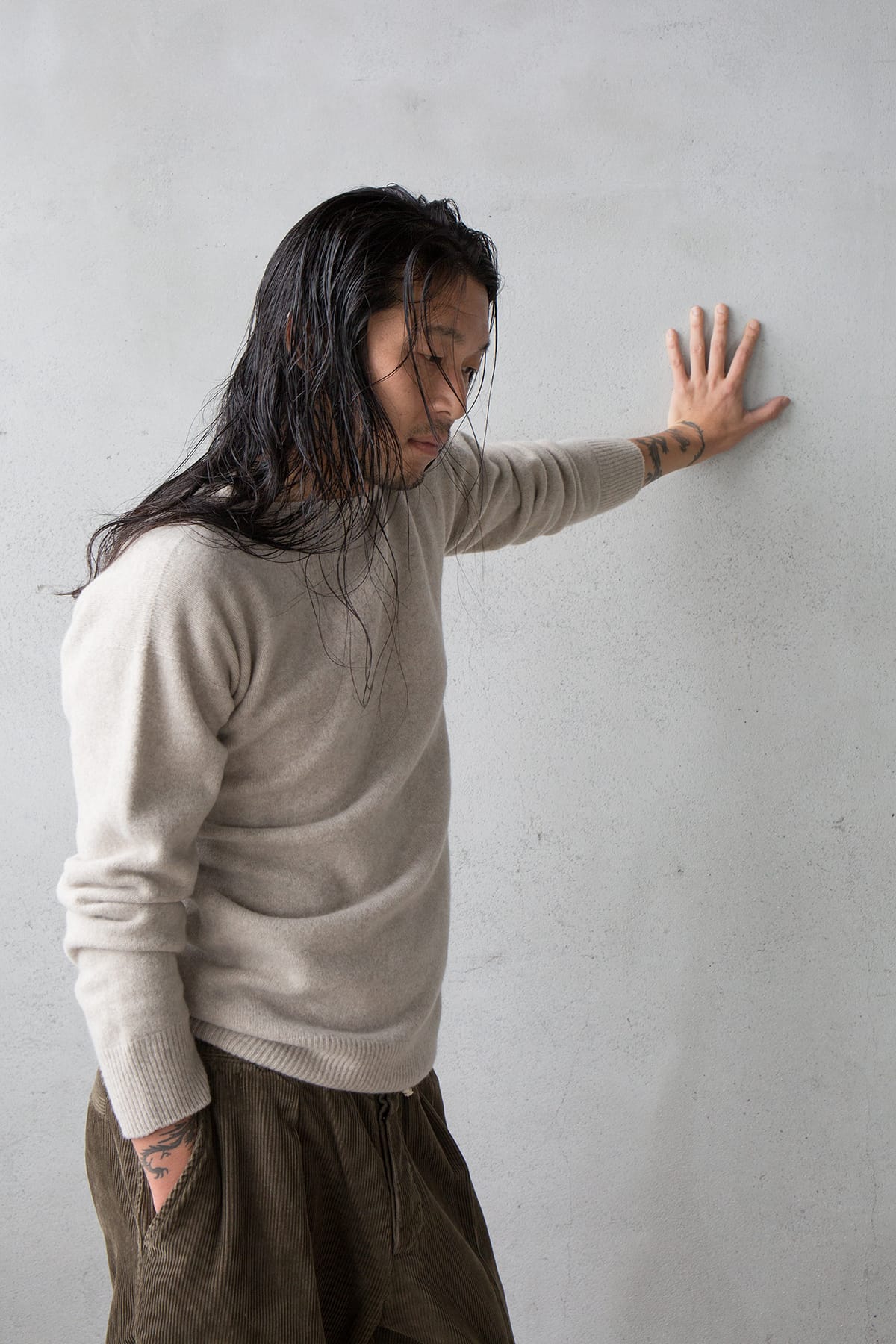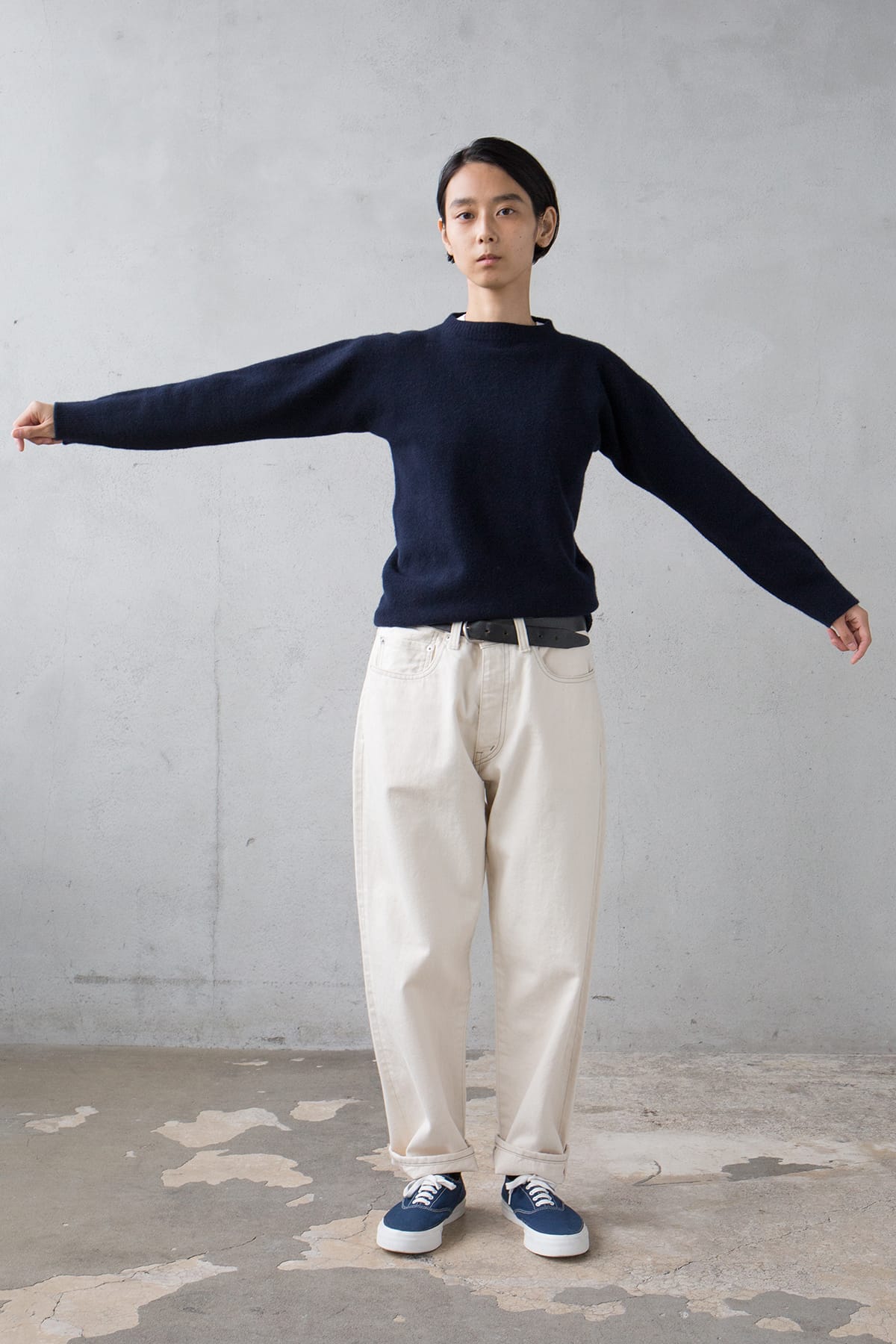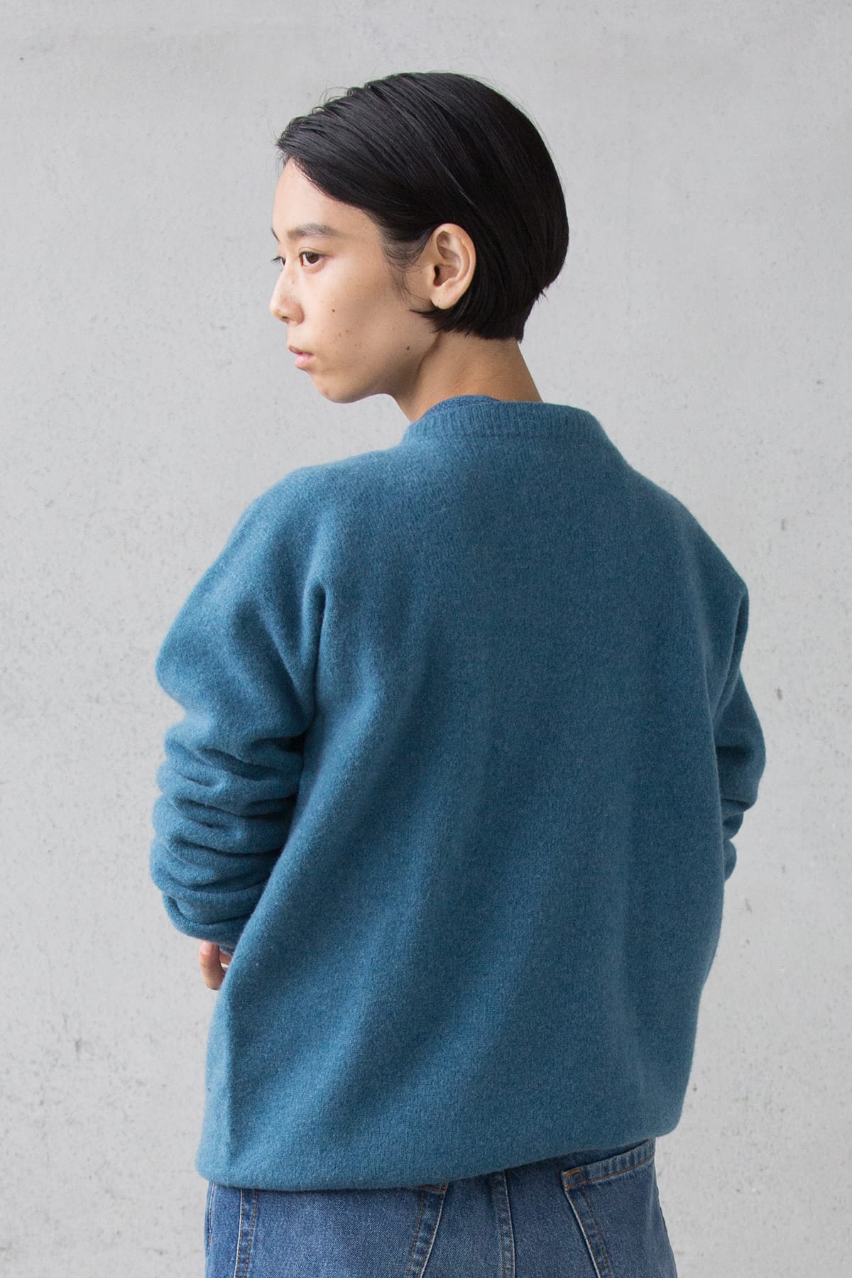 からだにそって生まれる陰影がうつくしい浅葱。