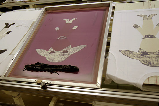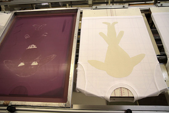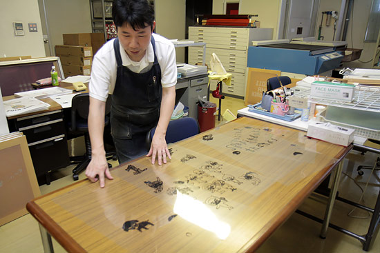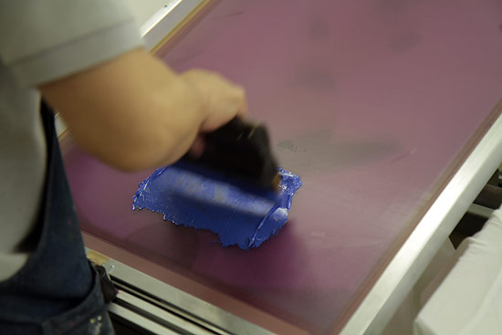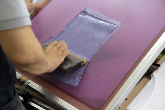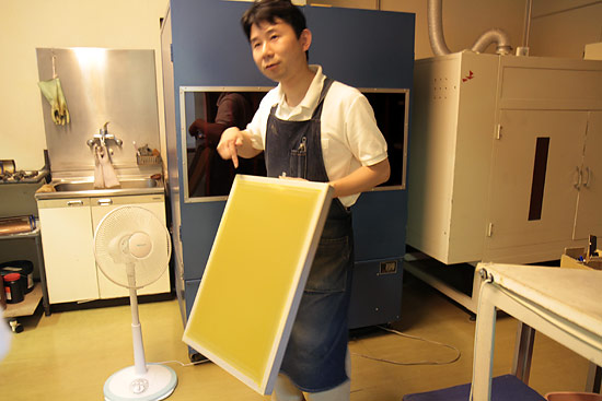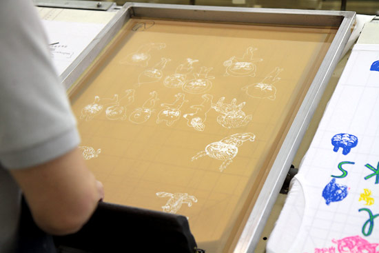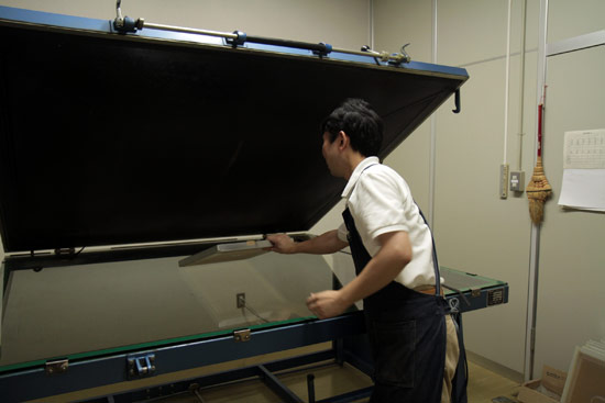 スクリーンにフィルムの柄を感光させて焼き付けます。