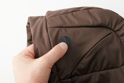 フード側面のボタンを押すと、