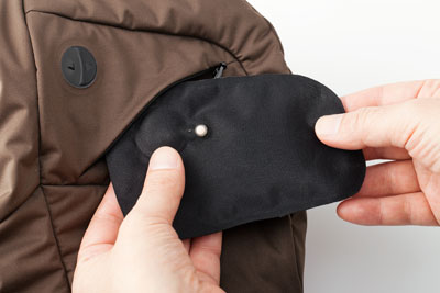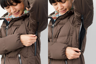 脇下のファスナーの開け閉めで、