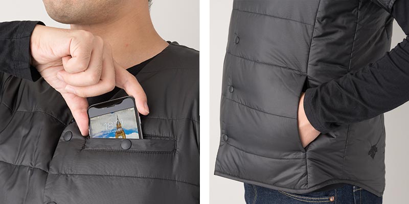 胸ポケットは、iPhone8も入るたっぷりした大きさ。
