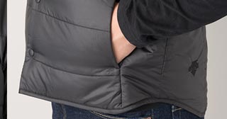 リバーシブル仕様のため、ブランドタグは脇ポケットの中に