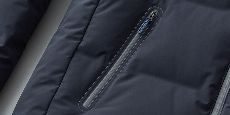 「止水ジッパー」と呼ばれる特殊なジッパーを用いて、