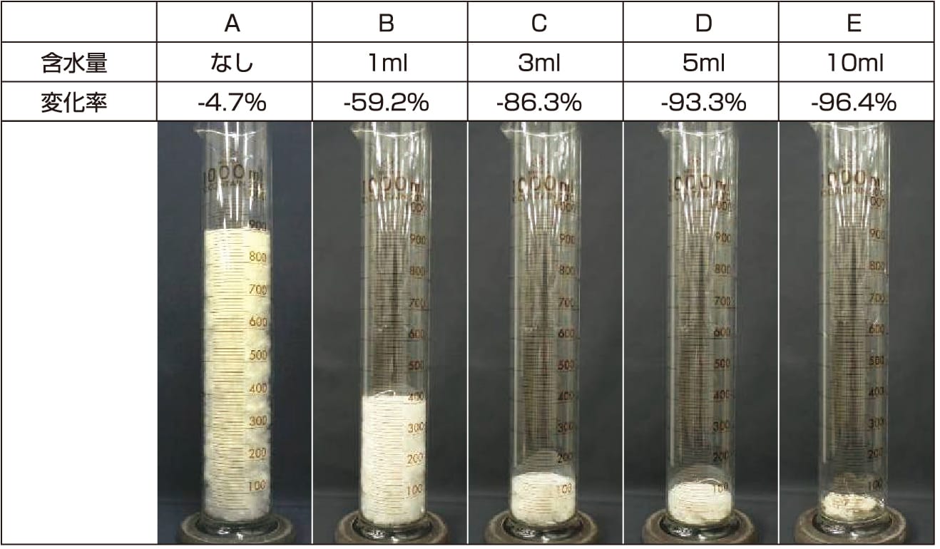 たった10ccの水で、こんなに嵩が減ってしまいます。