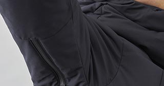 脇下のジッパーの開け閉めで、温度調節が可能です。