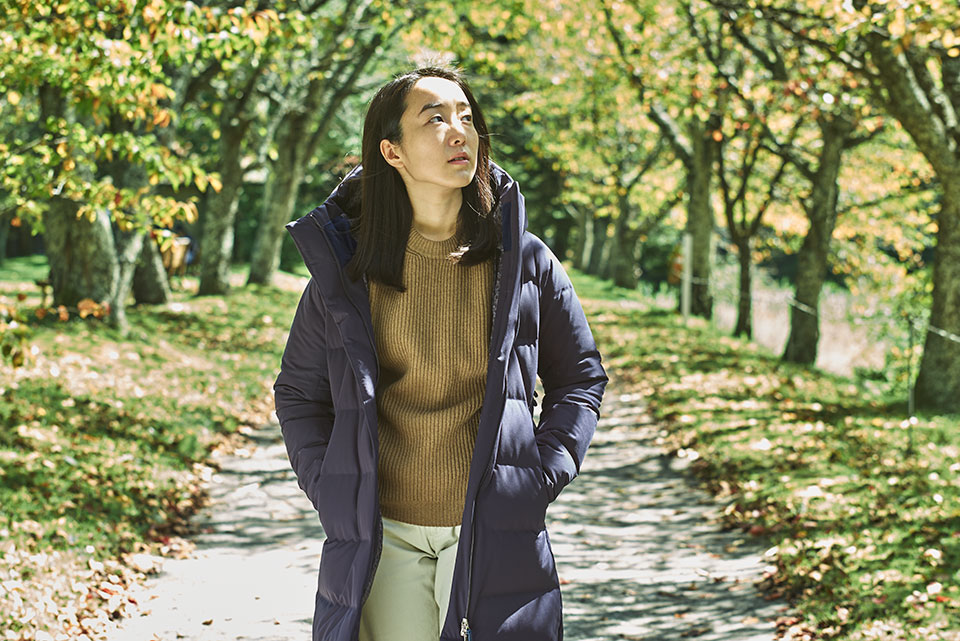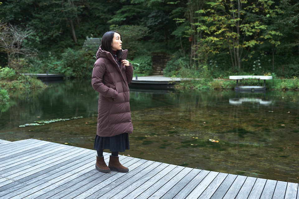 水沢ダウンはすっきりとしたシルエットなので、