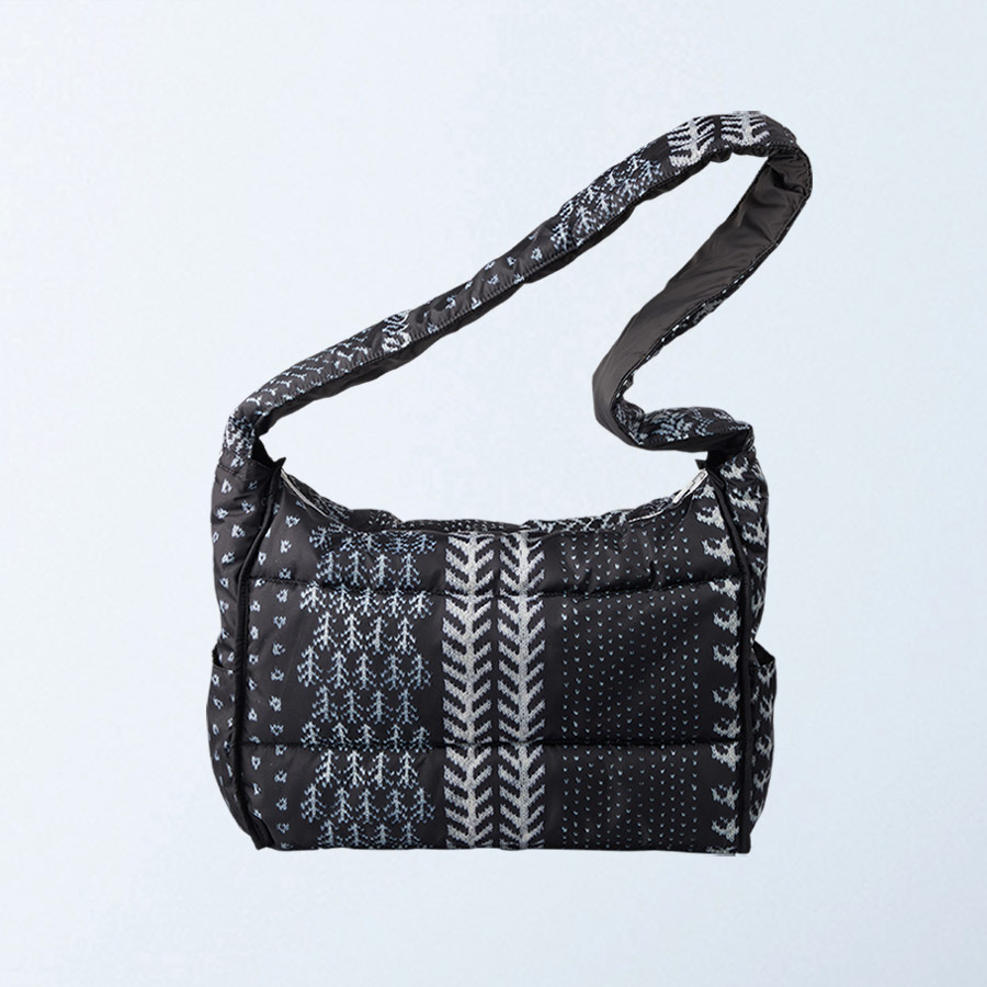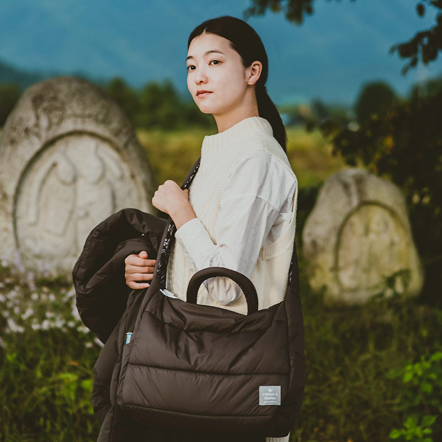 肩かけのや持ち手のなかにも、中綿がみっしり。