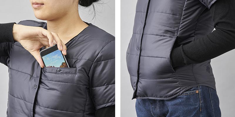 胸ポケットは、iPhone8も入るたっぷりした大きさ。