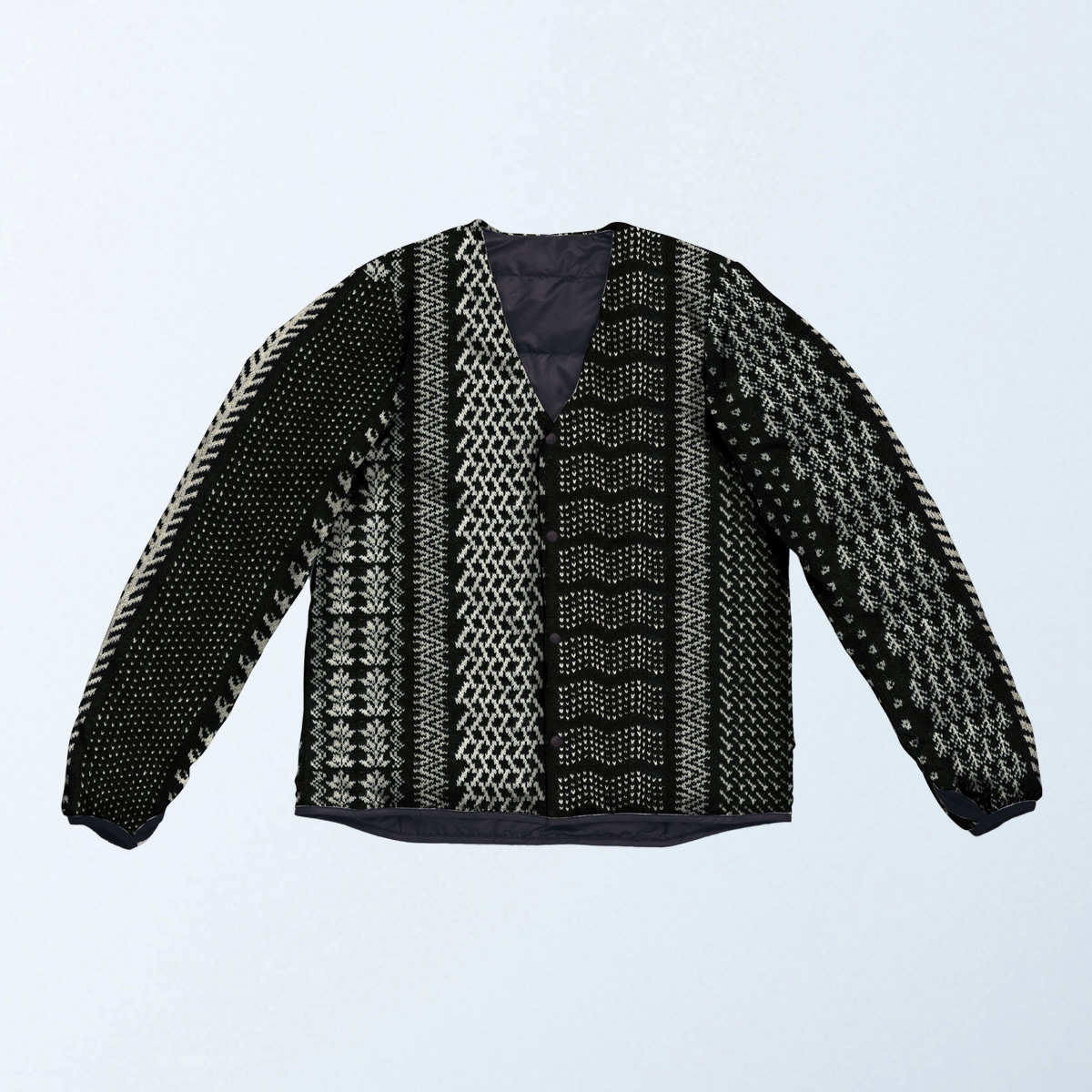 リバーシブル仕様のため、ブランドタグは脇ポケットの中に