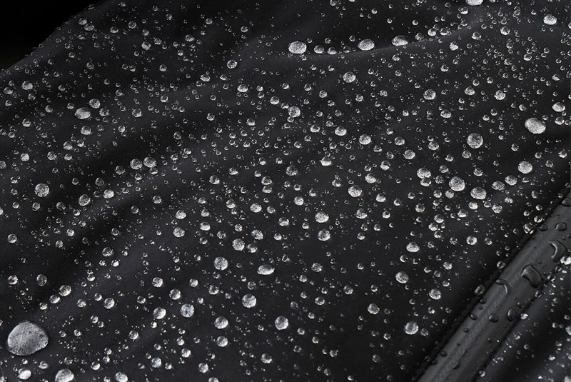 生地表面の強力はっ水加工、裏面の透湿防水膜加工など、