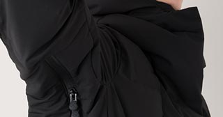 脇下のジッパーの開け閉めで、温度調節が可能です。