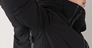 脇下のジッパーの開け閉めで、温度調節が可能です。