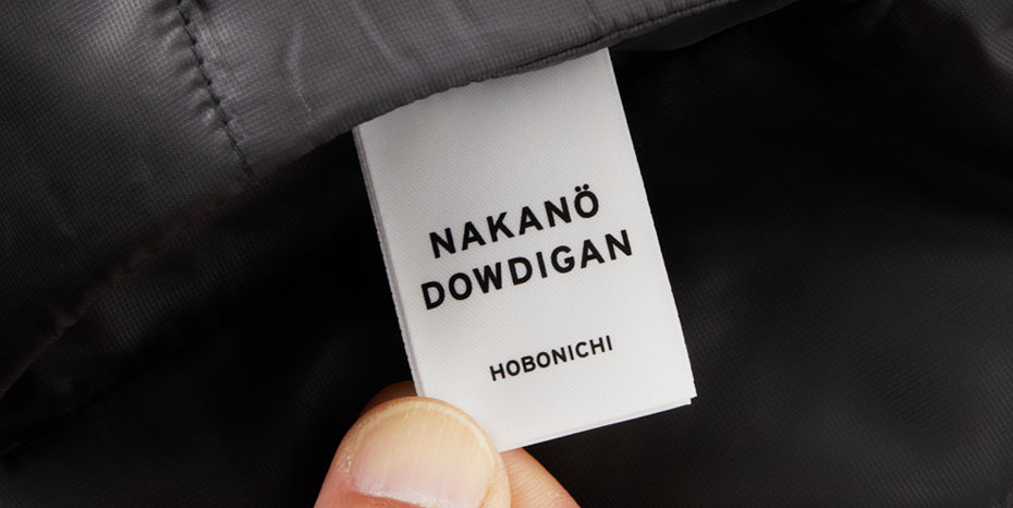 リバーシブル仕様のため、ブランドタグは脇ポケットの中に
