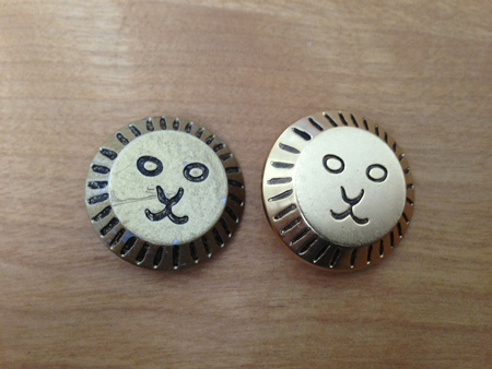 この帽子のシンボル、ゴールドのボタンも イラストで描いたデザインをボタンメーカーに渡し、