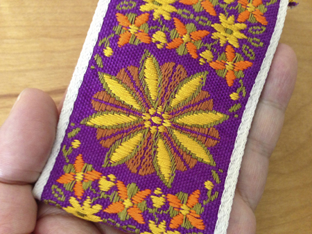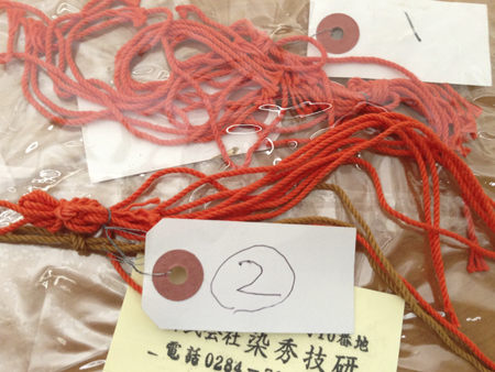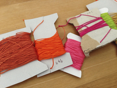 試作を重ねて、リボンは完成。 5色の糸で刺繍をしていくため、