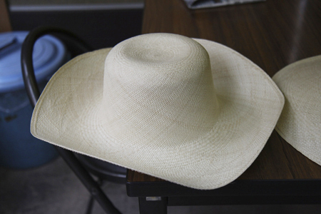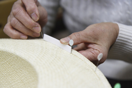 | 西海さん | で、 つばの余分なところを切り落としたら、 帽子の成形は終了。 |