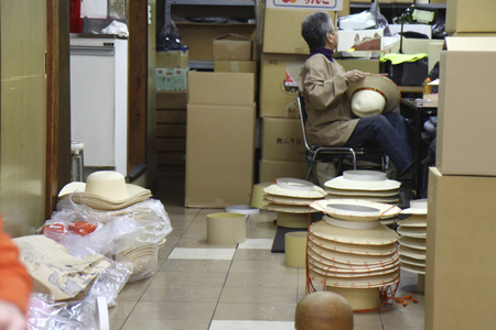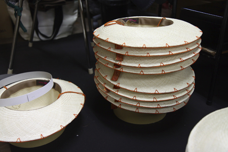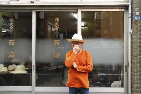 基本色のオレンジと、ブラウンを採用。 これを三つ編みにする工程と、 ![]() ようやくすべてのパーツがそろいました。 パナマの帽体、 そしてオリジナルのパーツたちはすべて、 「株式会社 西海」さんに集められます。 こちらは、台東区にある帽子製造の会社。 二代目の代表・西海敏郎さんが、 ここからの工程は、