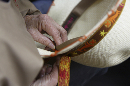 まずはこちらの写真をご覧ください。 エクアドルの女性が「パナマ」を編んでいる様子です。 刈り取った「パナマ草」を細かく裂き、茹で上げて、