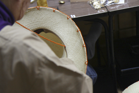 | 西海さん | 帽子のフチに飾りのひもを入れていく間隔です。 |