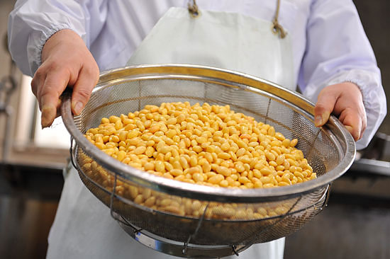 志賀さんが手にしているのが「大粒つるの子大豆」。