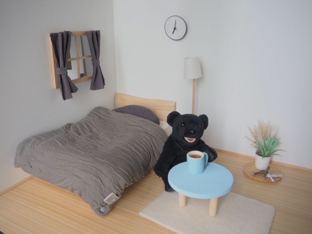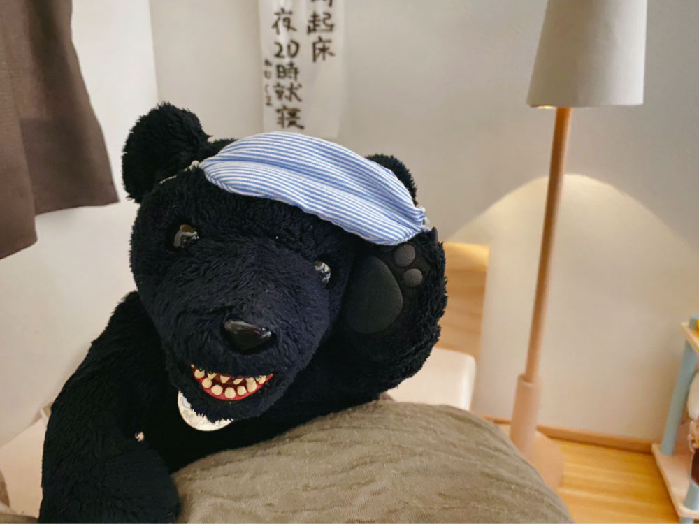 自分のベッドではなぜか眠れない、ねむくまです‥‥。