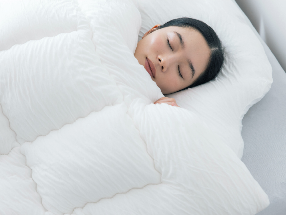 「冬のくまもとろけるふとん」が身体にふれるよう、