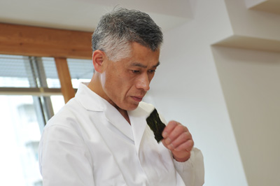 | 相沢 | バランスがいいですよね。 食材のもちあじをそこなわず、 けれど海苔らしい後味がある。 最後に苦みとかがなくて。 |