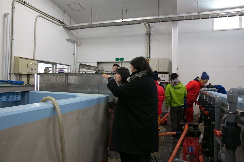 ▲海苔づくりの工場を見学しました。摘み取った海苔を洗うところから、かたちにして、問屋さんに出荷する状態まで、一気につくりあげます。