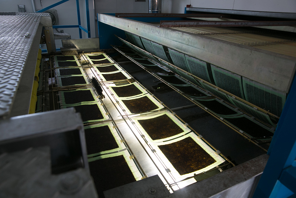 ▲最終的には二つ折りの状態で出荷されます。林屋さんのような問屋さんは、そうして、相沢さんが集めてくださった海苔。