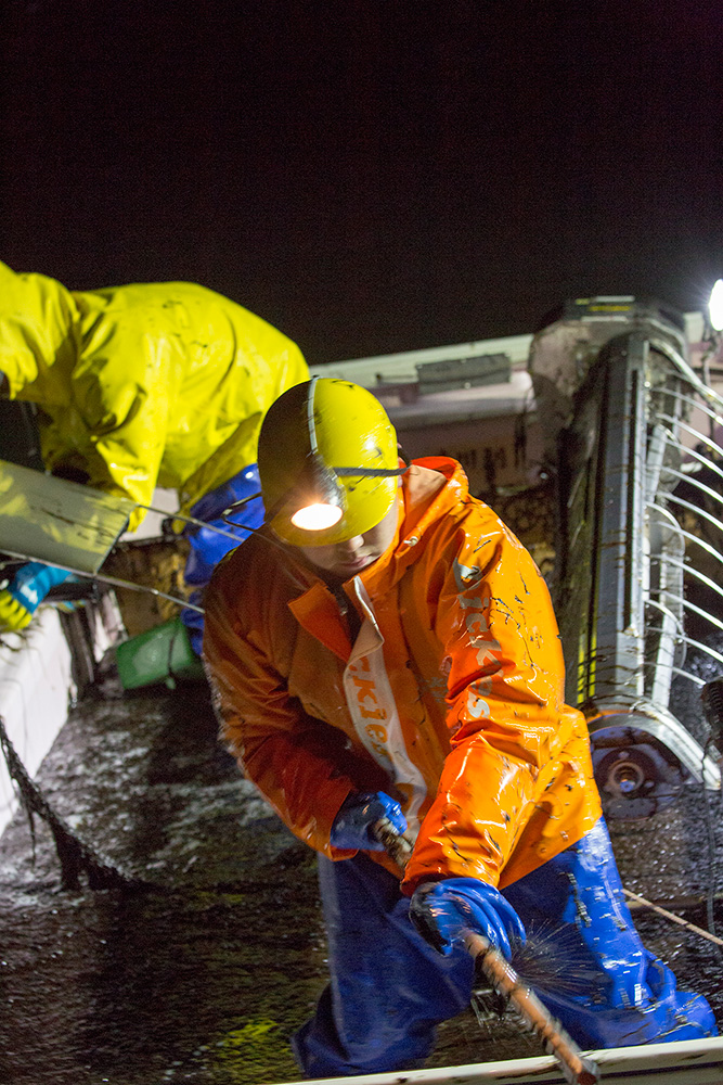 ずぶ濡れになりながらの作業をするのです。