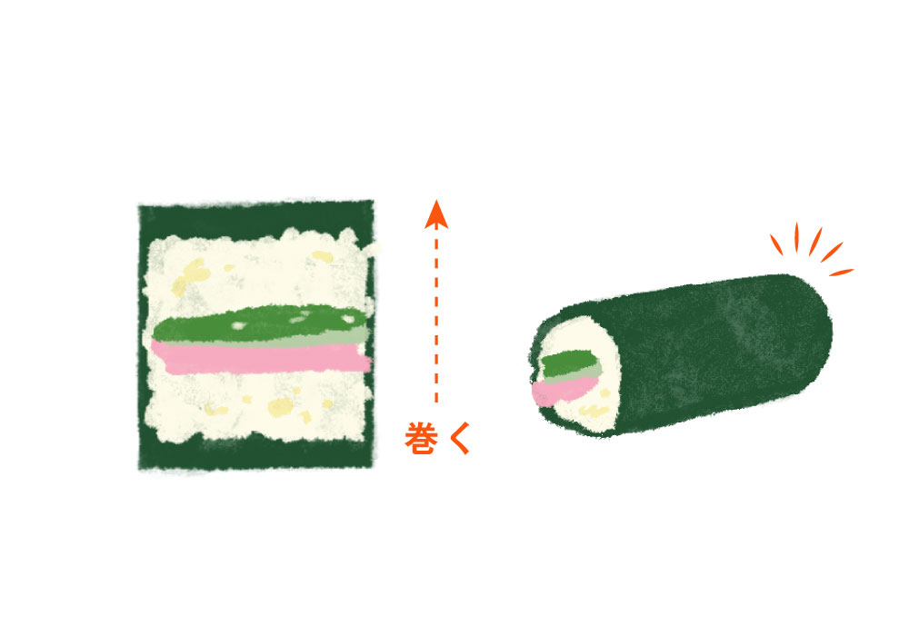 すめしと海苔で巻いて食べやすい大きさに仕上げます。