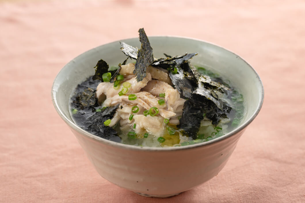 器にごはんを盛り、ほぐした鶏肉をのせ、