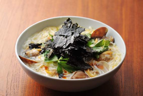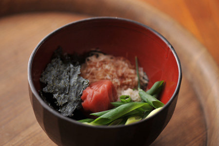 食べる直前に、1/4に切った海苔をのせてどうぞ。