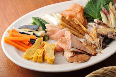 漬物(にんじん、なす、きゅうり、だいこん、しょうが、ごぼう)、