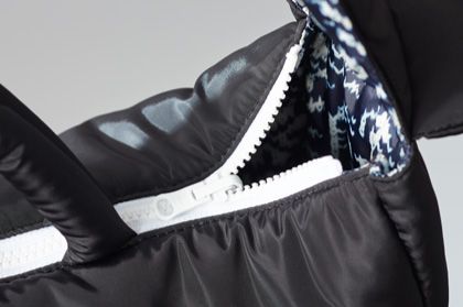 ふわふわバッグの口は、ジッパーで開け閉めできます。 両端が開くタイプですから、 ジッパーをあけて使うこともできます。 初代ふわふわバッグには、ジッパーを隠すための 前立てがあったのですが、それをなくして、 ジッパーが前立てを噛まないようにしました。 |