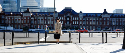 トレンチコート ¥66,150/ヌークアンドクラニー(ヌークストア) シャツ ¥18,900/ヤエカ(ヤエカ アパートメント ストア) スカート ¥18,900/ティ ヤマイ パリ(ティヤマイパリ代官山店) シューズ ¥31,500/アニエスベー