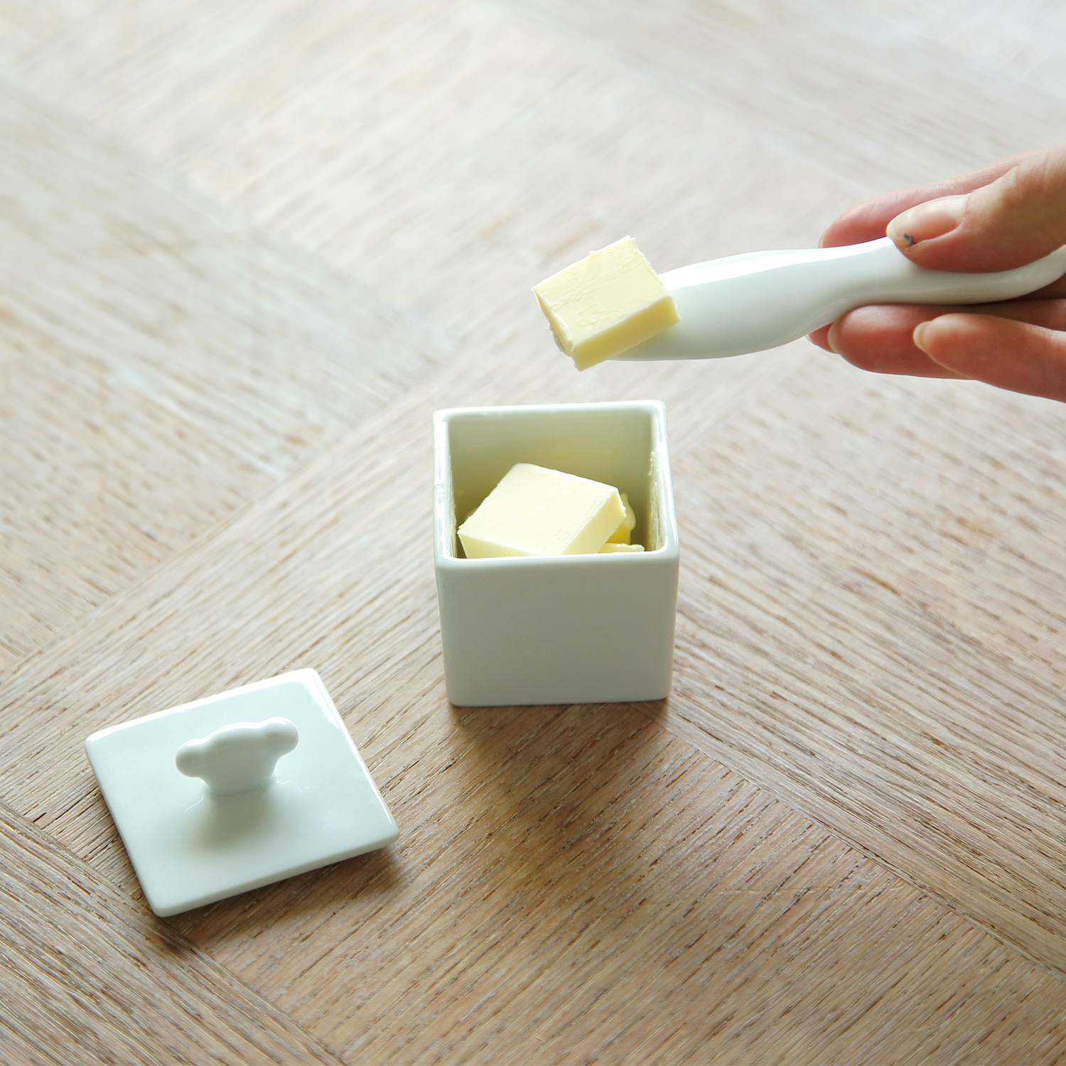 おなじ波佐見焼のぽってりしたバターナイフをそえると、