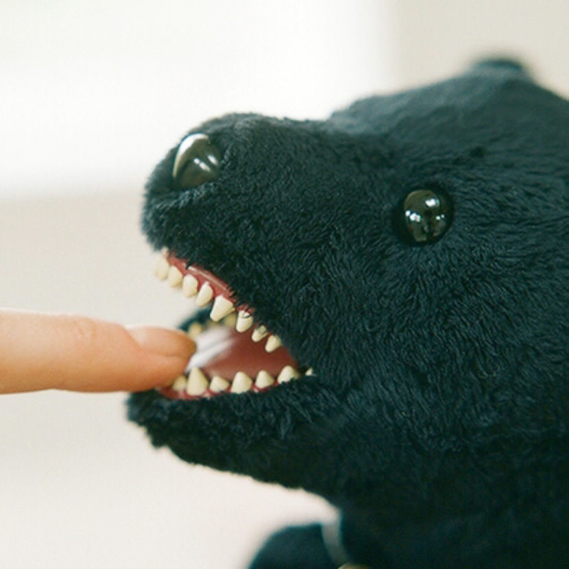 ぬいぐるみにあるまじき、するどい歯と爪を持っています。