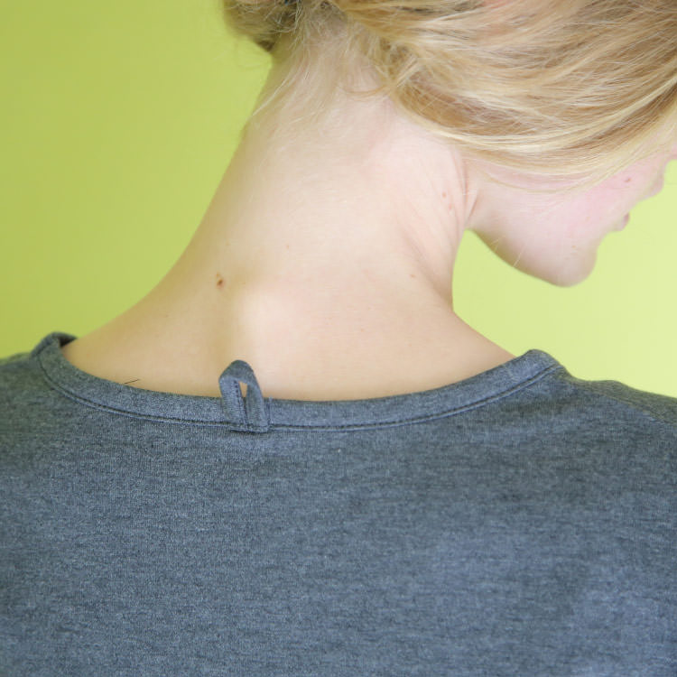 ウエストのシェイプ、短めの袖丈、広めの首もとなど、