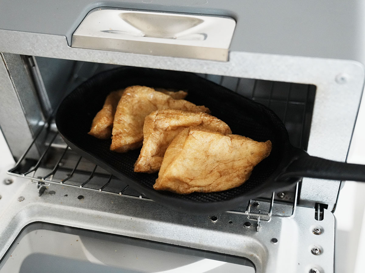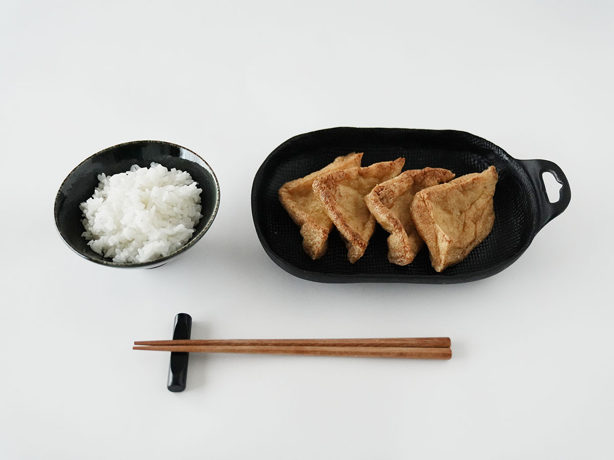 醤油ベースのたれを絡ませた、味つきの油揚げです。