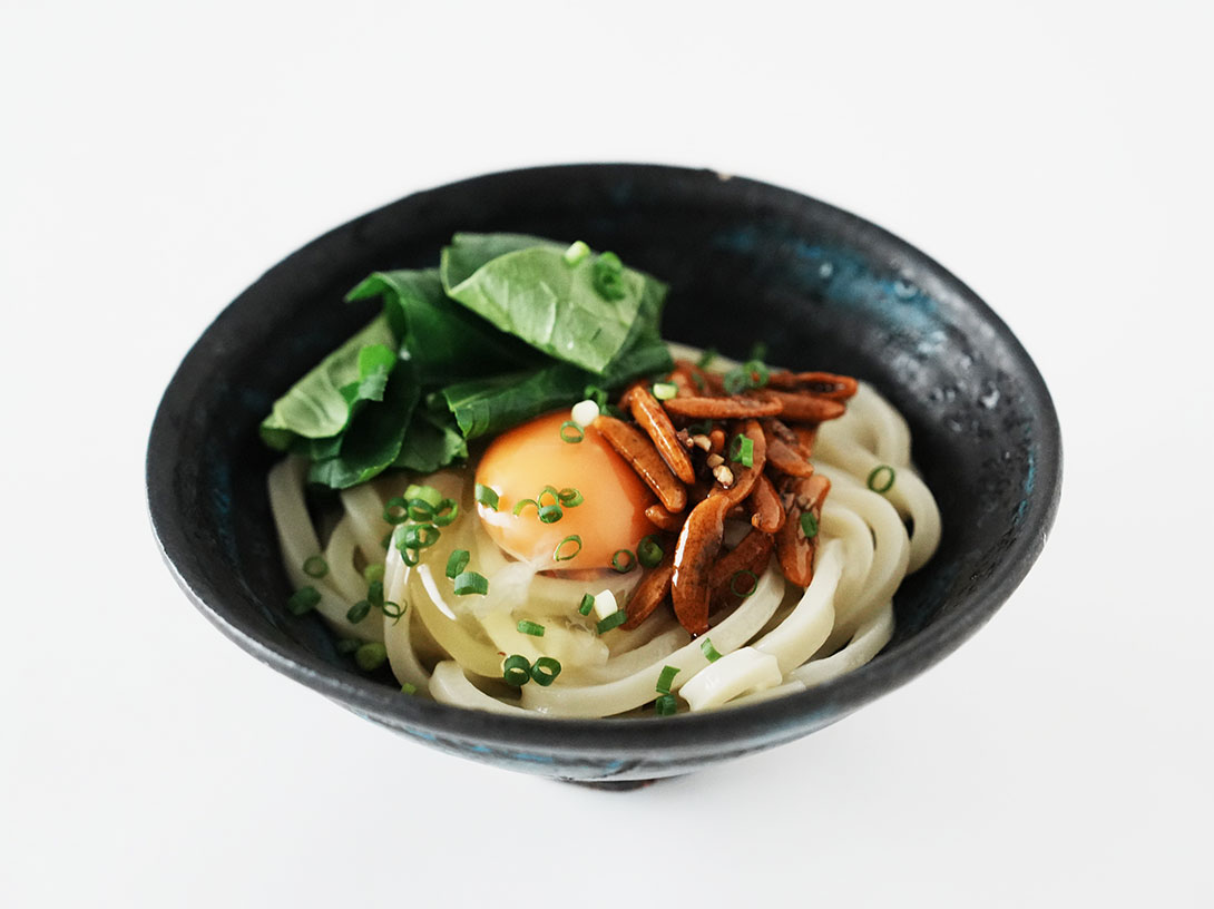 うどん1玉に、大きいスプーンで1杯半ぐらい。