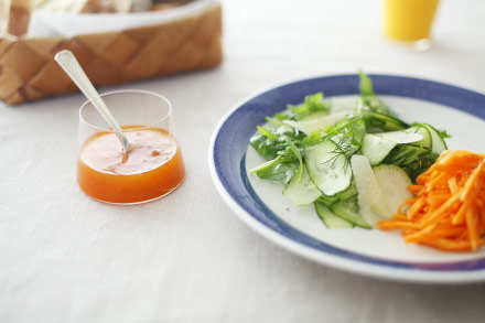写真のサラダは、グリーンサラダとニンジンのラペ。