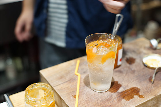 氷を入れたグラスにトニックウォーターを注ぎ、