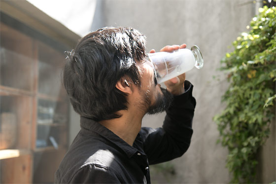 工場の大きな鍋で、ゆっくり注意深く煮ています。
