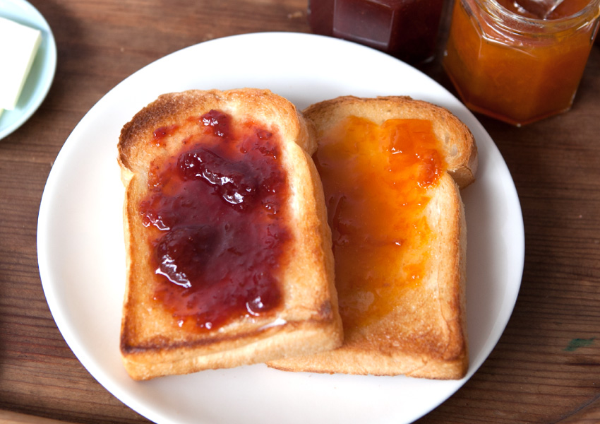 トーストをこんがり焼いてから、室温にもどしておいたバターをまんべんなくぬり、