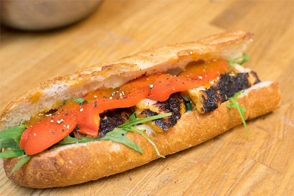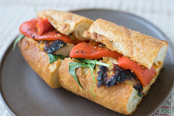 くわしいレシピタンドリーチキンとパプリカのバゲッドサンドあんずのソース