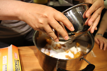 | 土鍋 どの鍋がよいかと聞かれたら、ぼくは迷わず 土鍋をおすすめします。 火が全体に均一に入り続けるので、しあがりが違います。 土鍋がなければ、できるだけ 厚手の鍋を使うようにしてください。 |