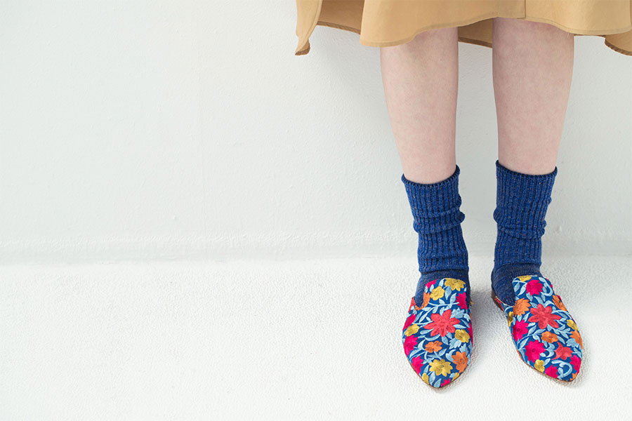 いろいろな靴や服に合わせやすい色で編んでいます。