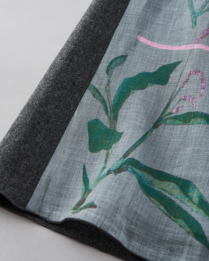 ・平織りのリネン生地にインクジェットプリントを